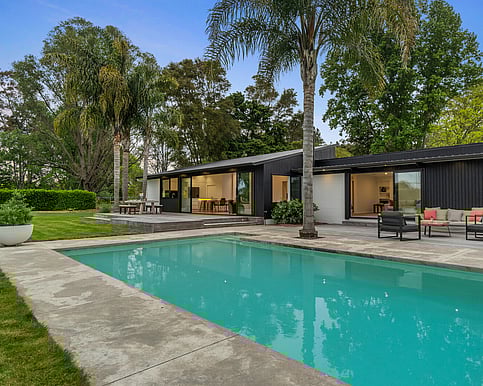 Step inside to discover timber oak floors, high ceilings, and expansive opening doors that blur the boundaries between indoor and outdoor living. The varying ceiling heights and pitches throughout the home provide further intrigue and space.