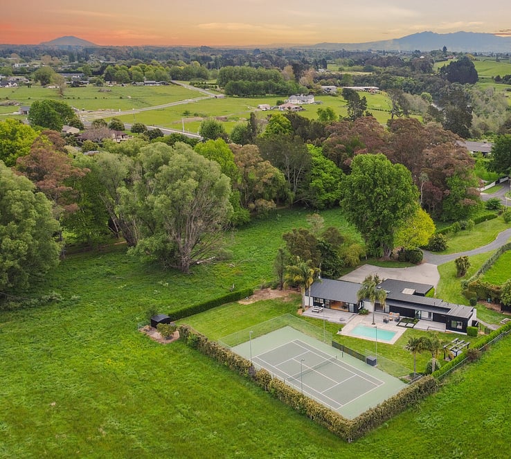 This is more than a home—it's your private resort lifestyle—where architectural excellence meets luxury amenities in one of Waikato's most prestigious locations. Imagine coming home each day to amenities that others travel hours to experience: a sparkling pool for a morning swim, a tennis court for weekend matches, expansive entertaining spaces for gathering with family and hosting friends, and tranquil grounds for peaceful reflection.